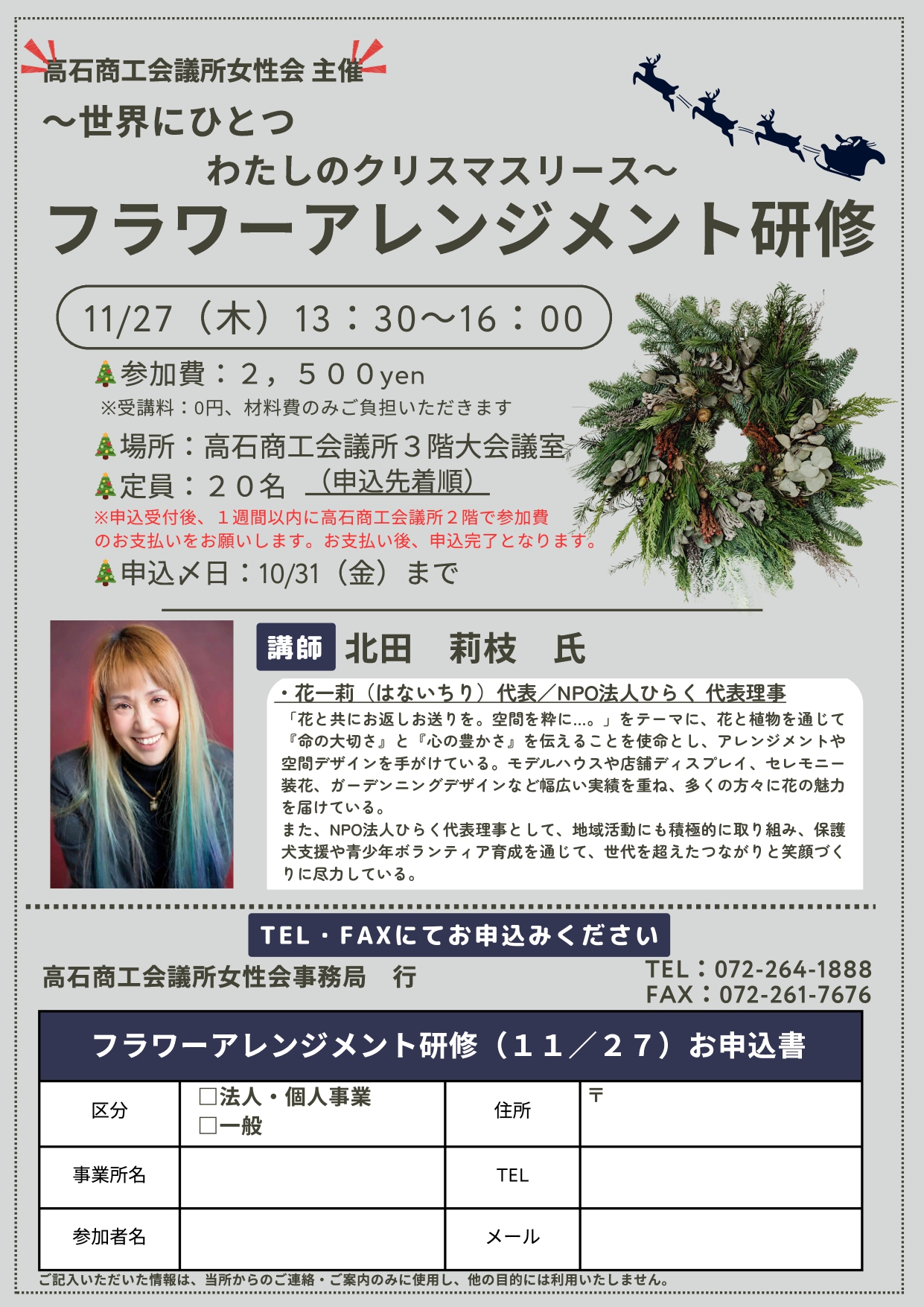 このたび、高石商工会議所女性会主催のフラワーアレンジメント研修に講師としてお招きいただき、心より感謝申し上げます。